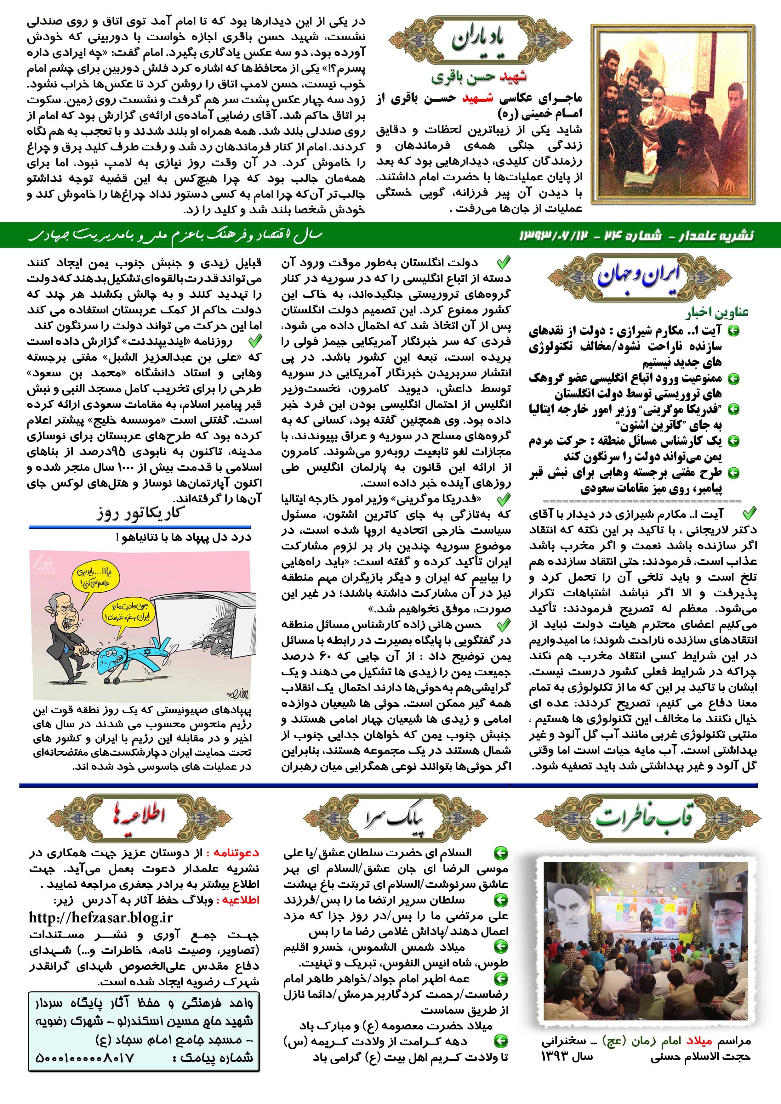نشریه علمدار _ شماره بیست و چهار _ چهارشنبه 12 شهریور 1393