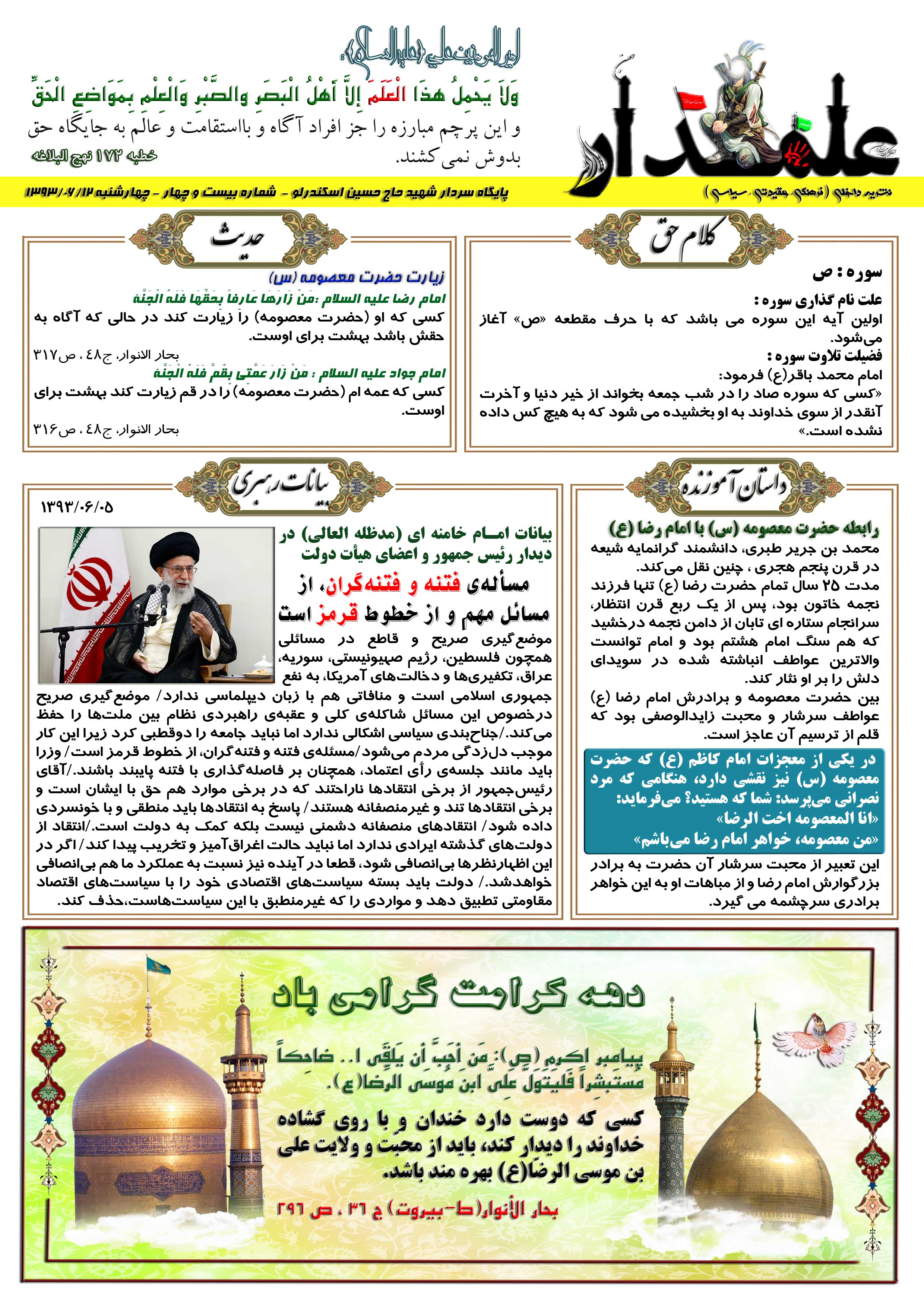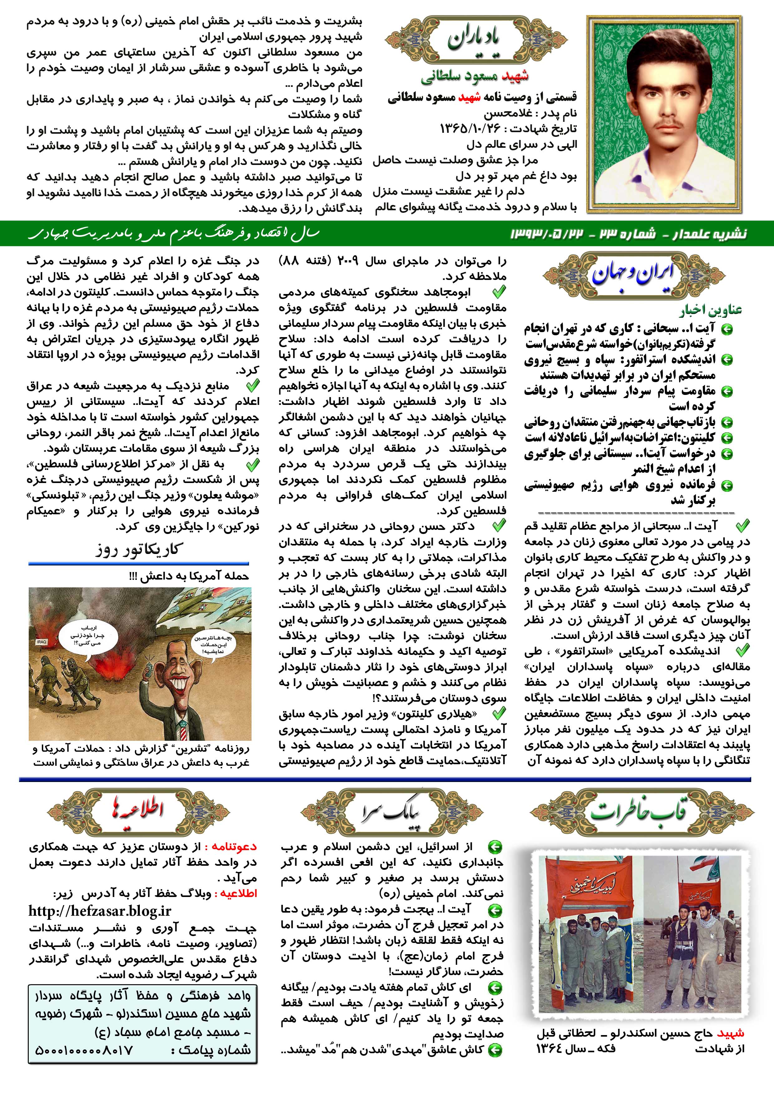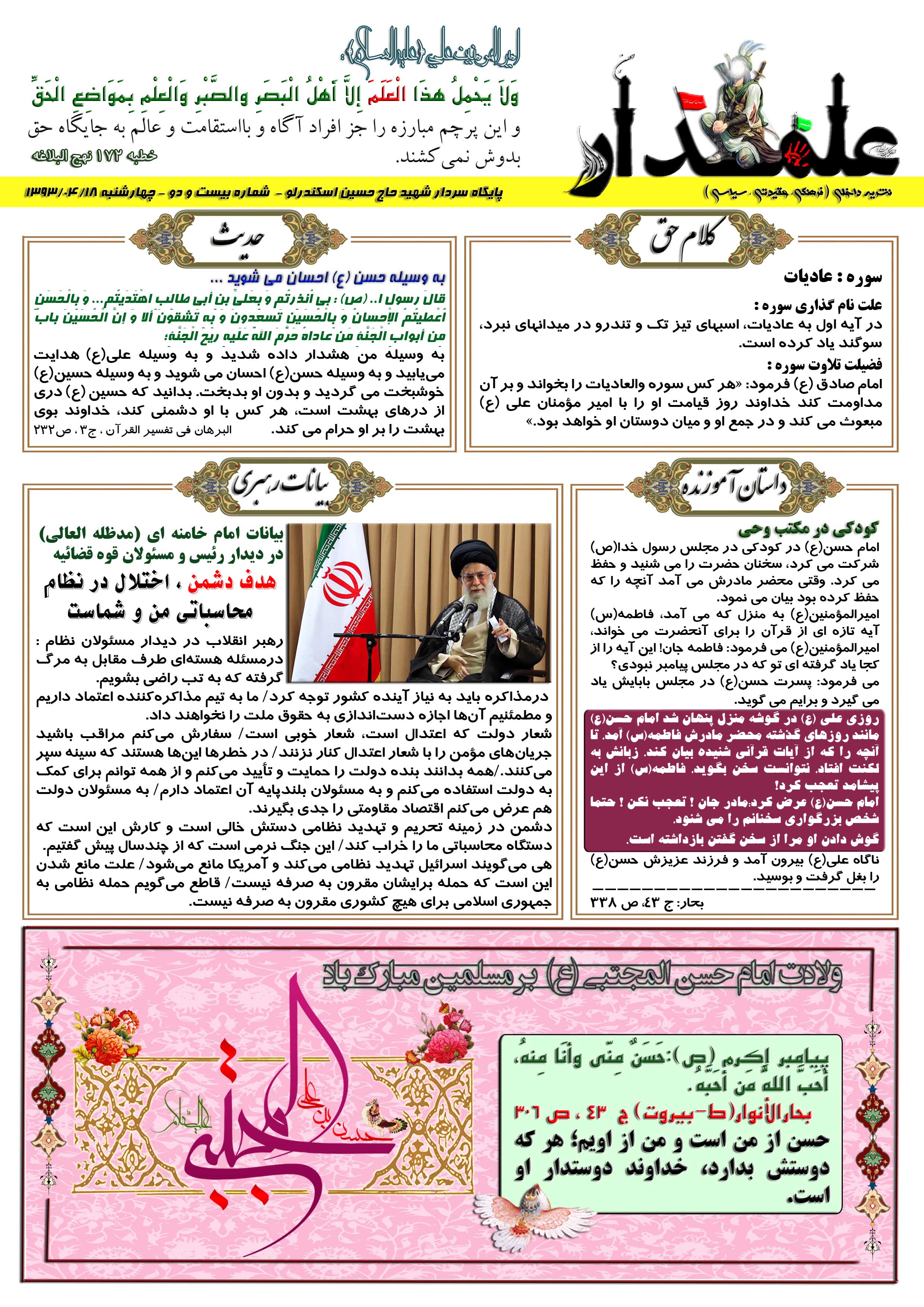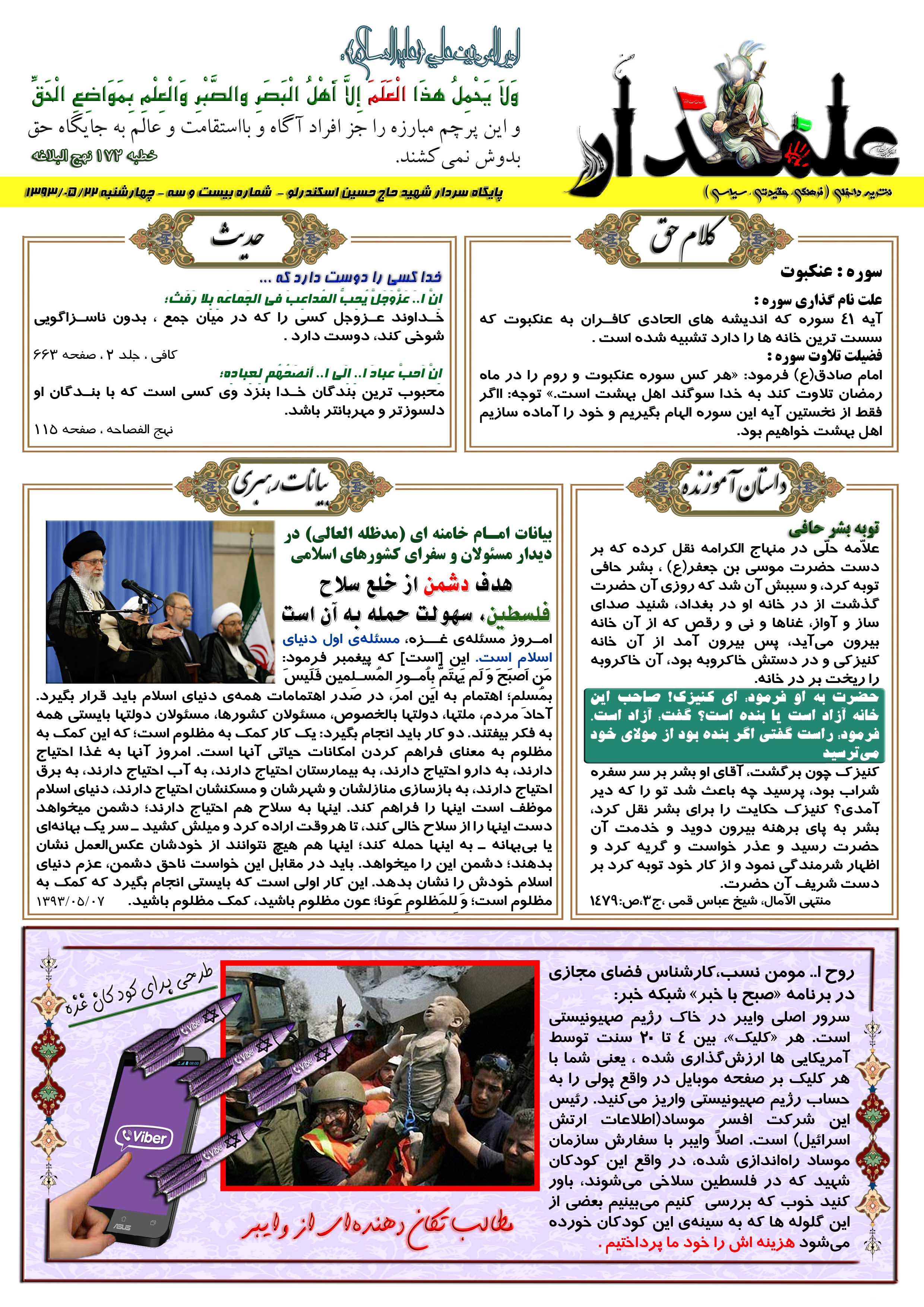 نشریه علمدار _ شماره بیست و سه _ چهارشنبه 22 مرداد 1393