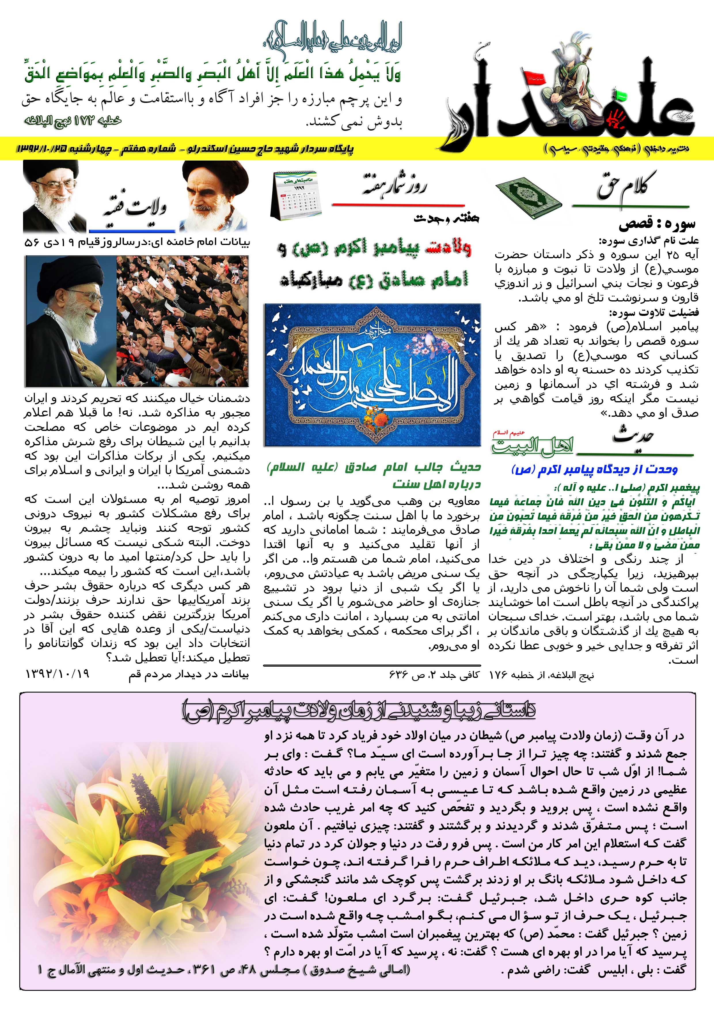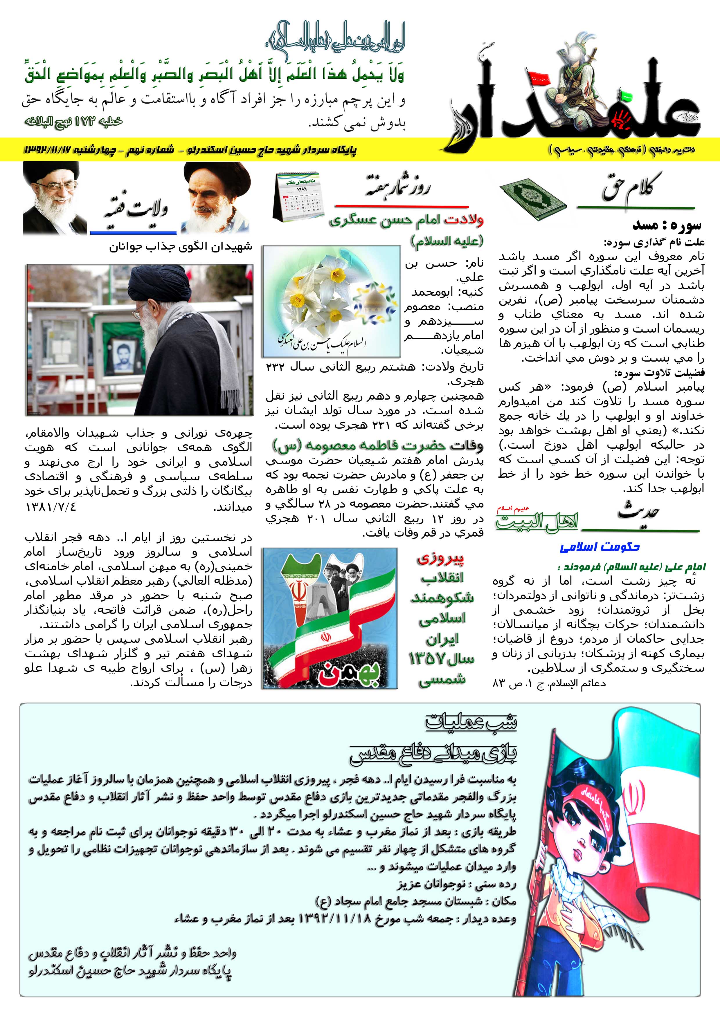 نشریه علـمدار _ شماره نهم _ چهارشنبه 16 بهمن 1392