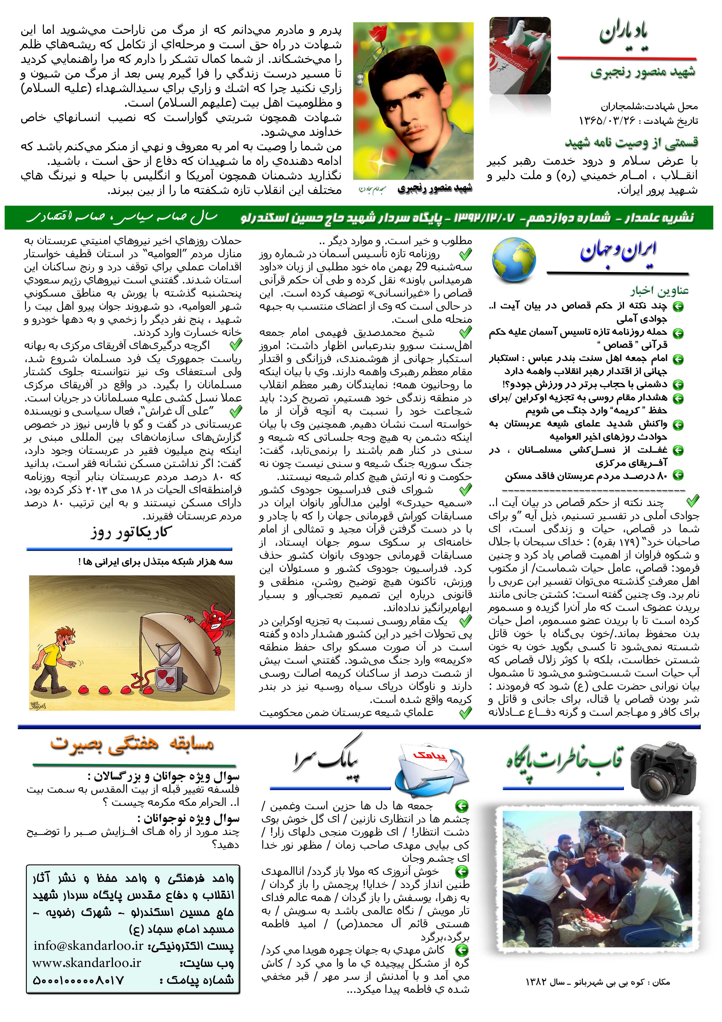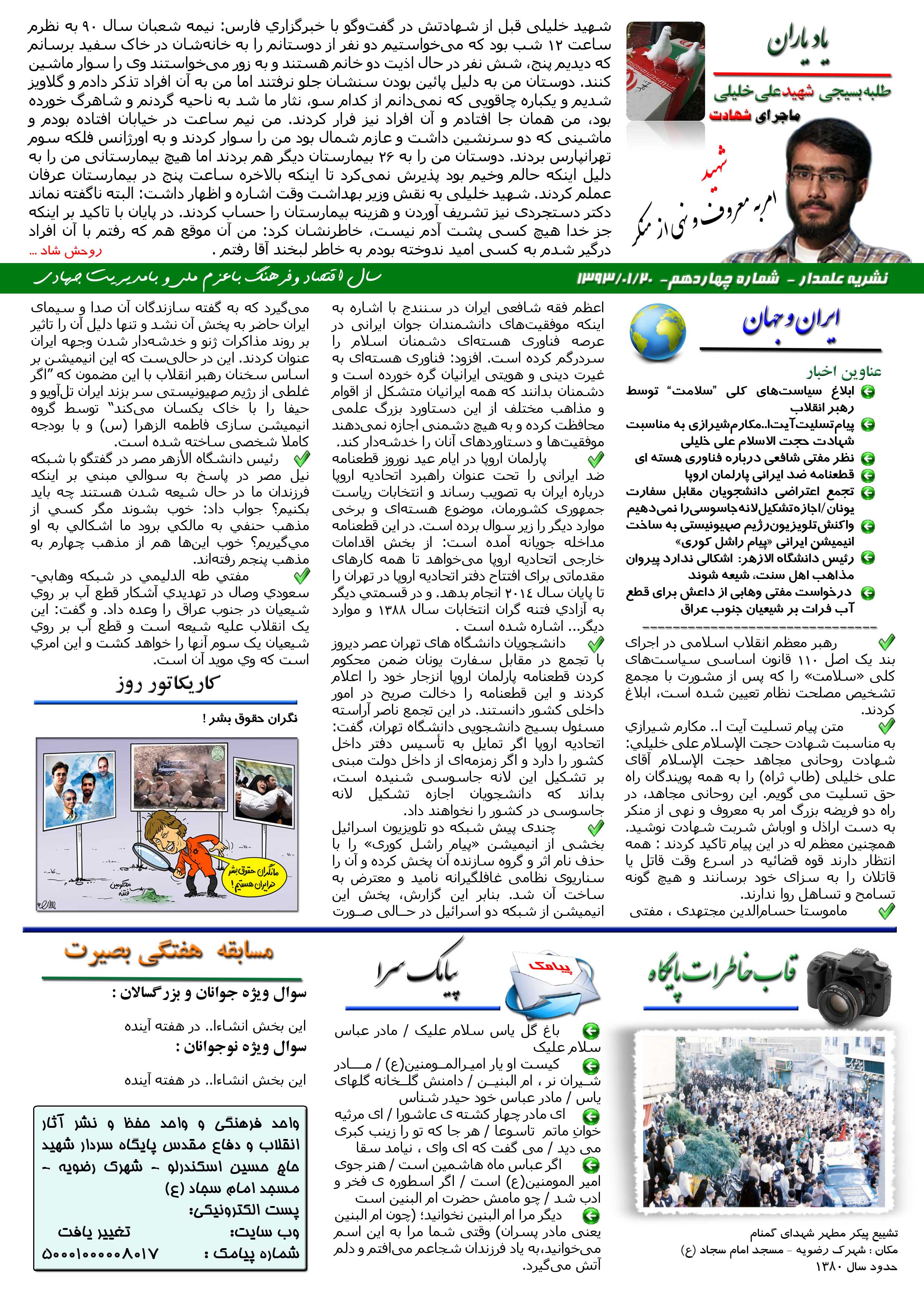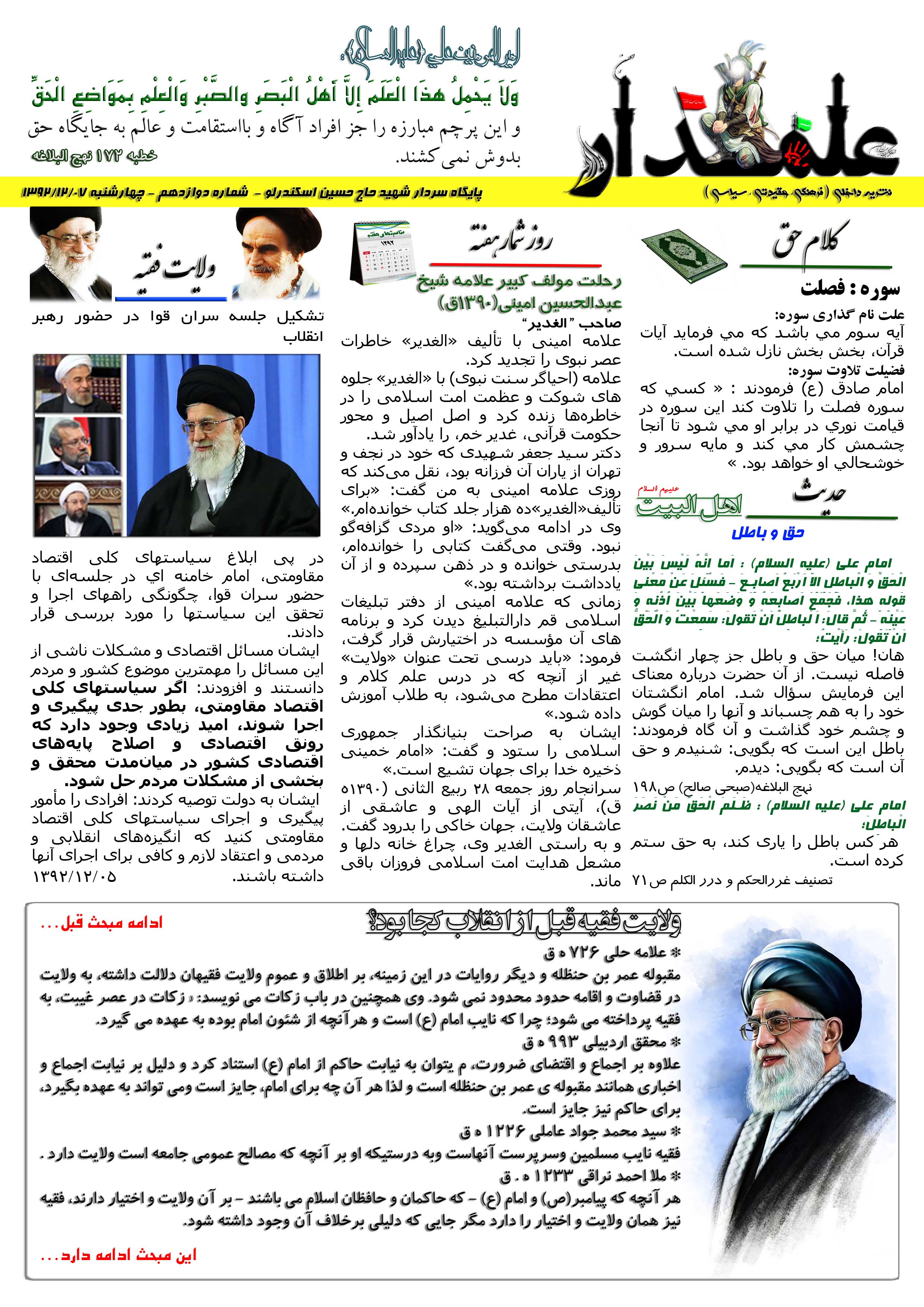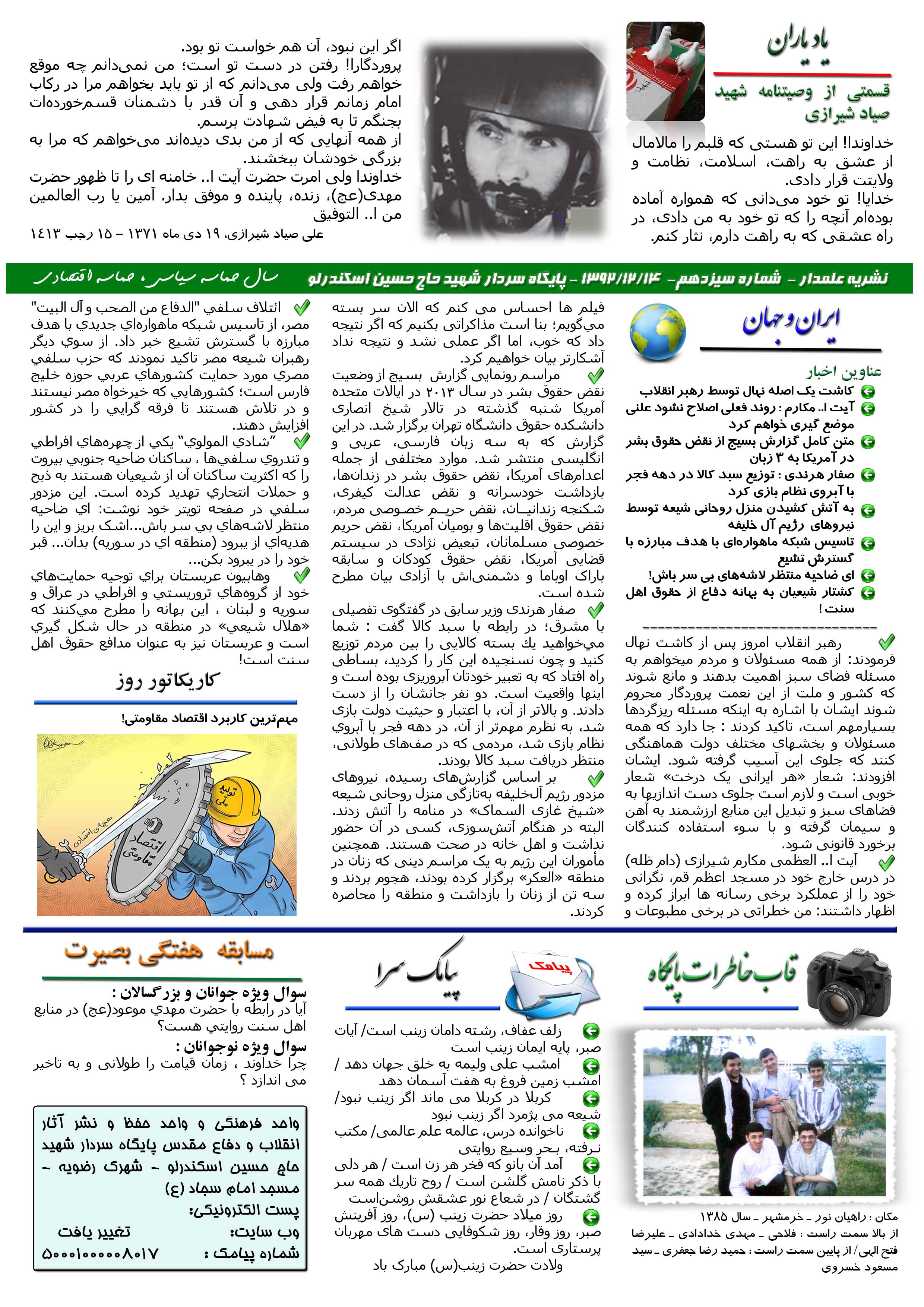 نشریه علمدار _ شماره چهاردهم _ چهارشنبه 20 فروردین 1393