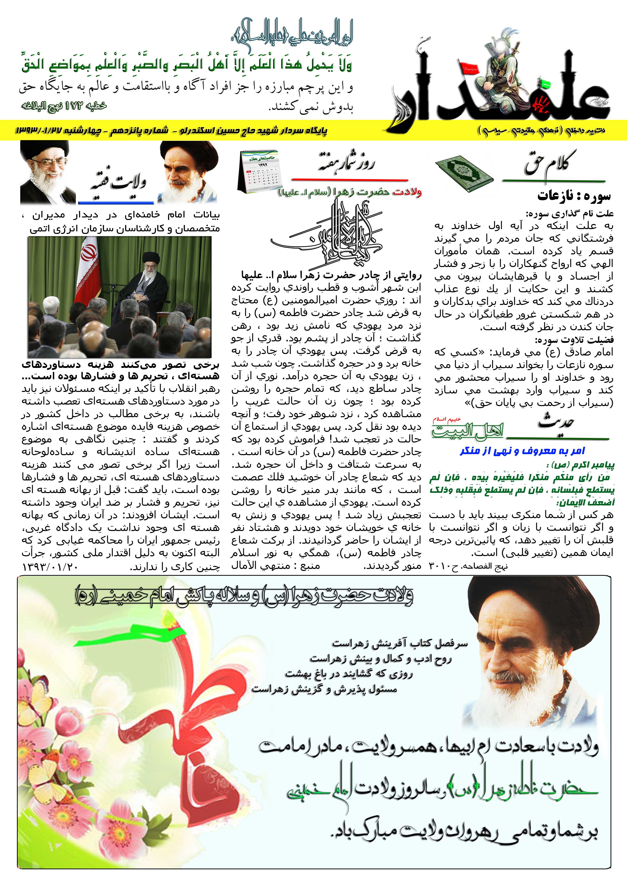 نشریه علمدار _ شماره پانزدهم _ چهارشنبه 27 فروردین 1393